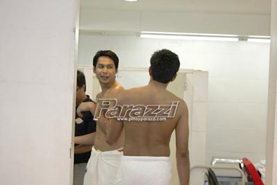 3 Gusto namang magsolo ni Francis Allera. Hindi nasiyahan, humarap pa siya sa salamin. Buti’t hindi nalalaglag ‘yung towel niya… marami pa namang nag-aabang.
